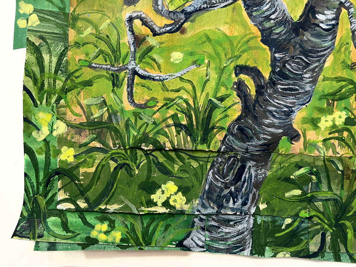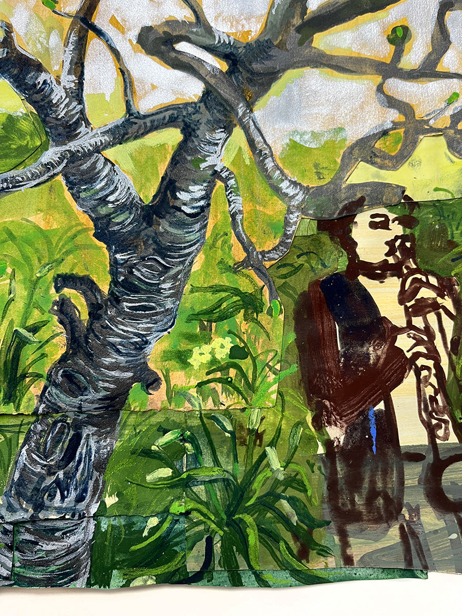 "This work is based on several drawings made from observation of my partner practicing the clarinet outside on one of the first days of spring. It was one of those cold grey days, but there was a certain brightness as well as the primroses and daffodils to signify winter was losing its grip. I was thinking about imagery of the pied piper and also about pipers heralding arrival : the arrival of spring, Santiago's arrival in the rural British countryside (he is from Colombia), and his arrival in my life."