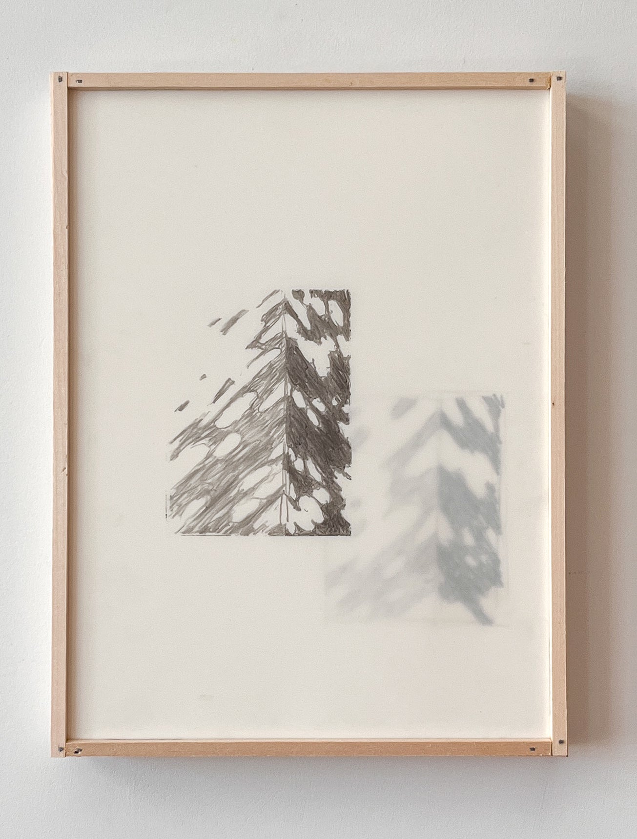 Charcoal on layered Transparent Yupo paper, handmade wooden frame